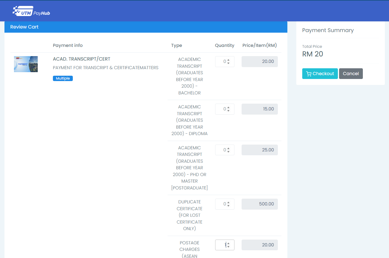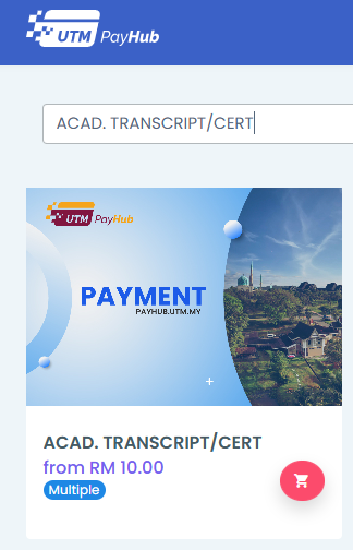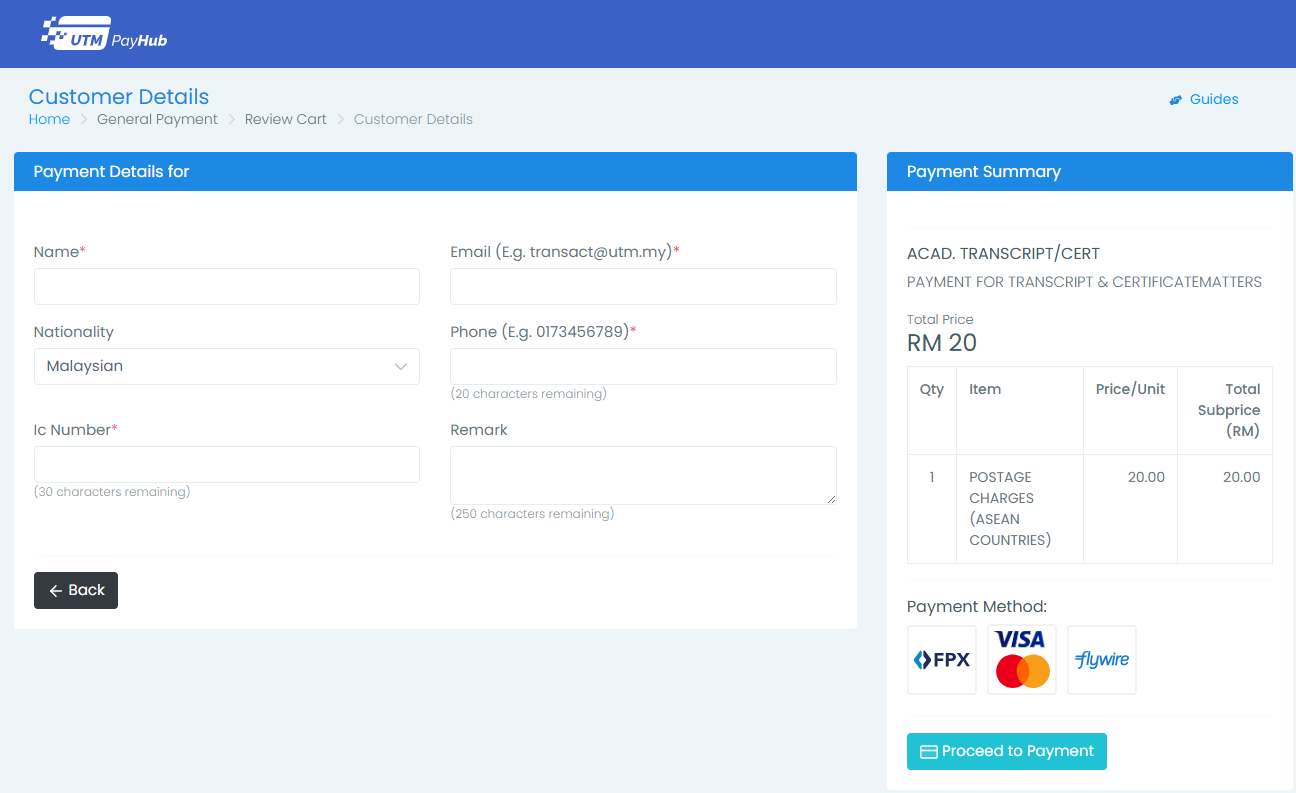 Make payment for Postage Fee via: https://payhub.utm.my/