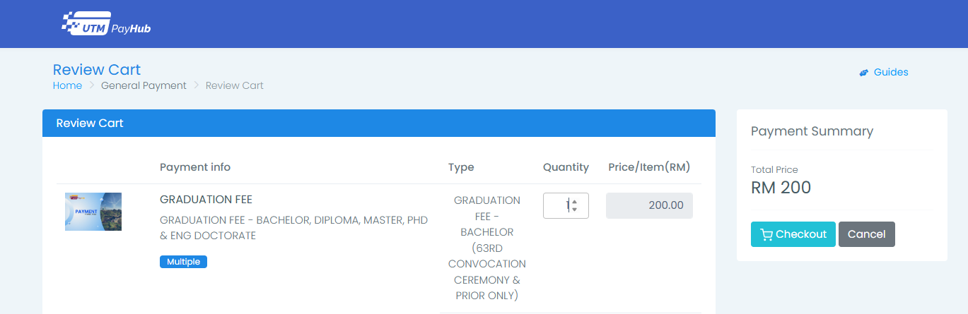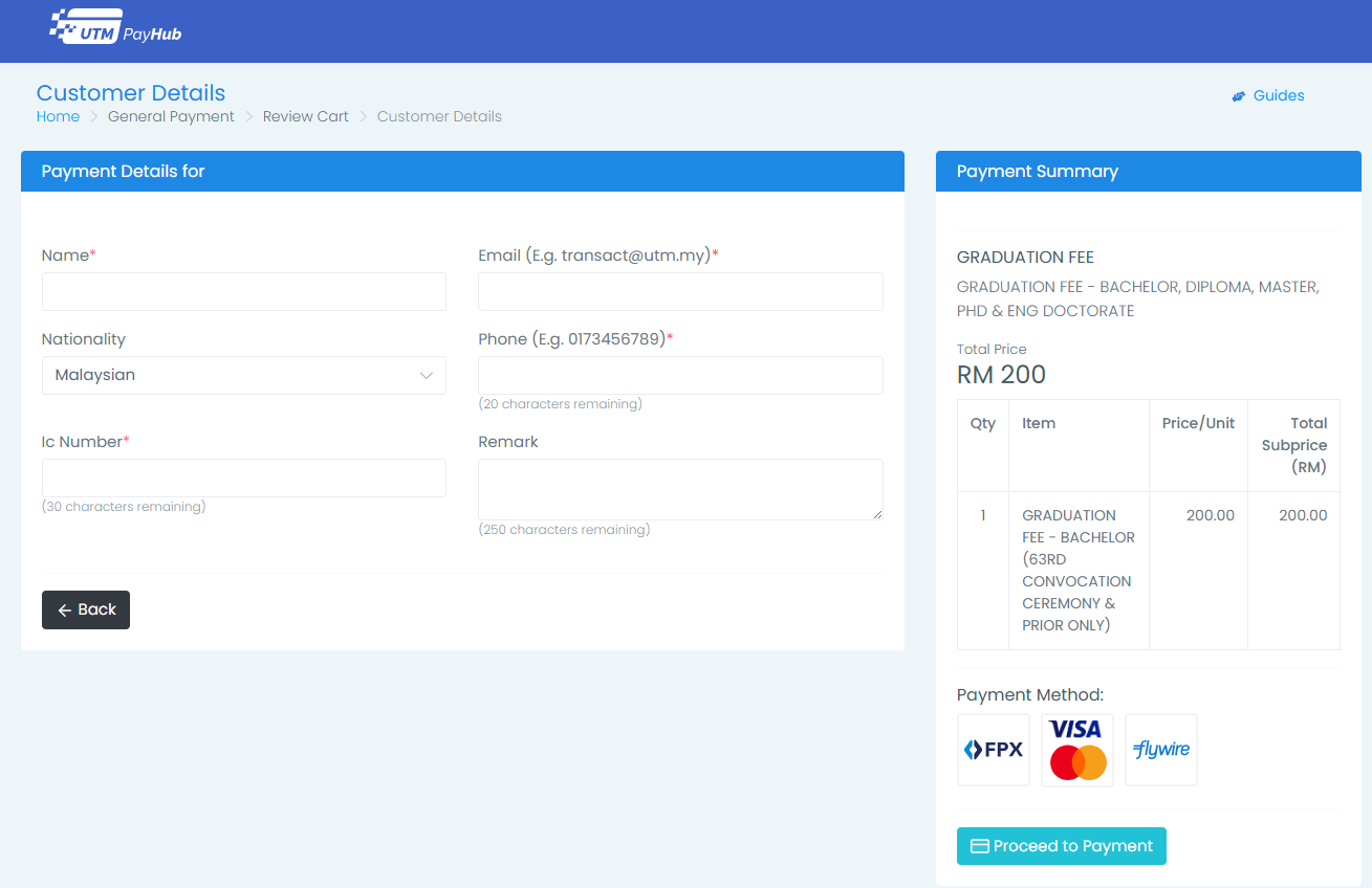 Make payment for Graduation fee via: https://payhub.utm.my/